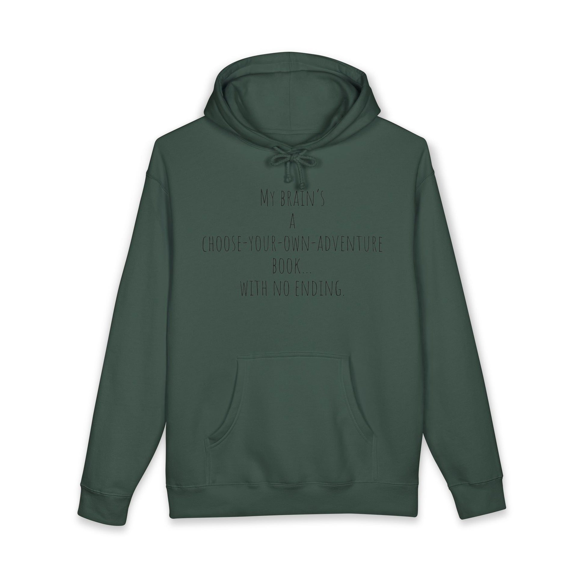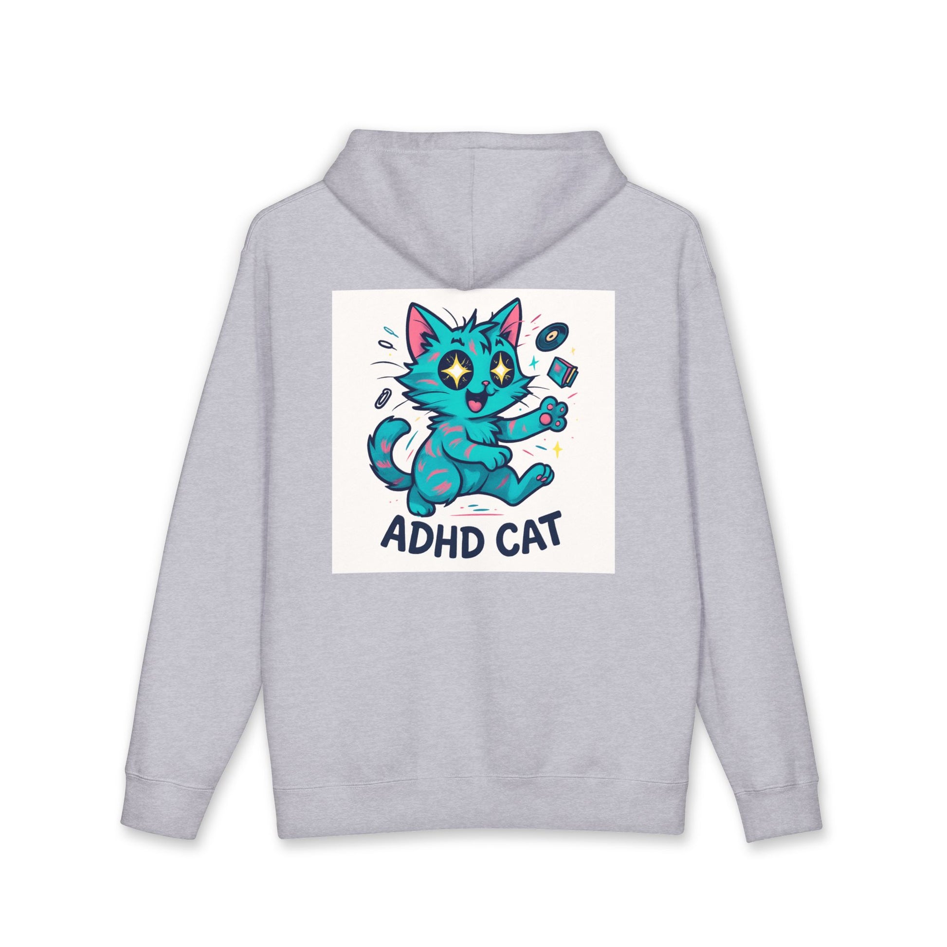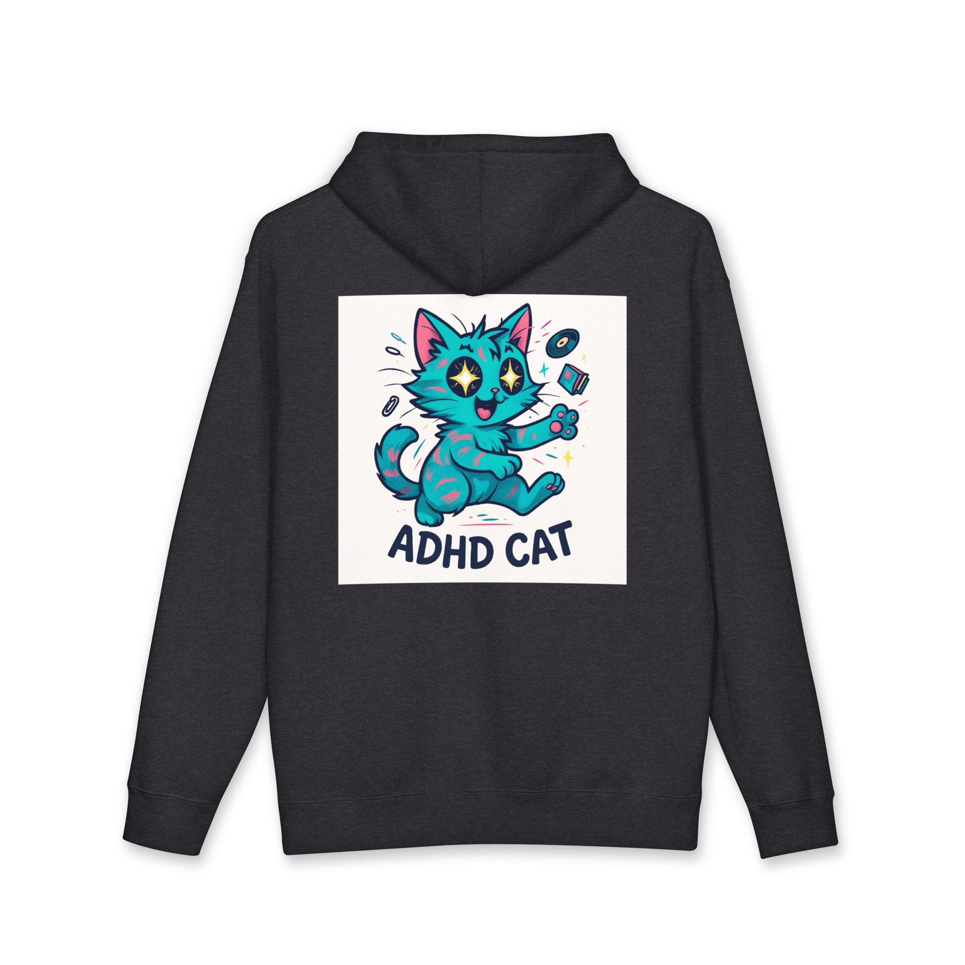 This heavyweight hooded sweatshirt wraps you in quiet, cozy confidence. The front carries a light, whimsical line about a restless imagination: “My brain’s a choose-your-own-adventure book, with no ending.” On the back, a bright, playful turquoise cat mid-mischief declares “ADHD CAT,” capturing restless energy with humor and charm. Thick fleece inside the hood and a dense 10 oz fabric keep chill at bay while the roomy cut lets you layer comfortably. Wear it on slow mornings with coffee, at study sessions when focus drifts, or on long drives that need a companionable laugh. The design feels like an inside joke for folks who live with scattered brilliance — gentle, honest, and unapologetic.